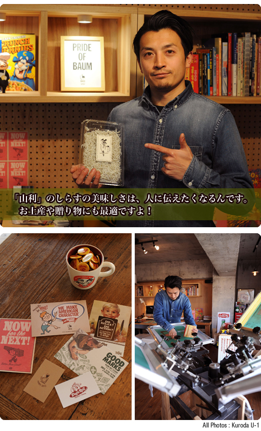 昨年、中華そば"丸田屋"の丸田くんから「和歌山には面白いしらす屋さんがいるんです」と尚博くん(七代目)を紹介してもらったのが「山利」を知るきっかけです。そのブランディングを知り、これまで抱いていた”しらす屋”の概念をひっくり返されましたね。